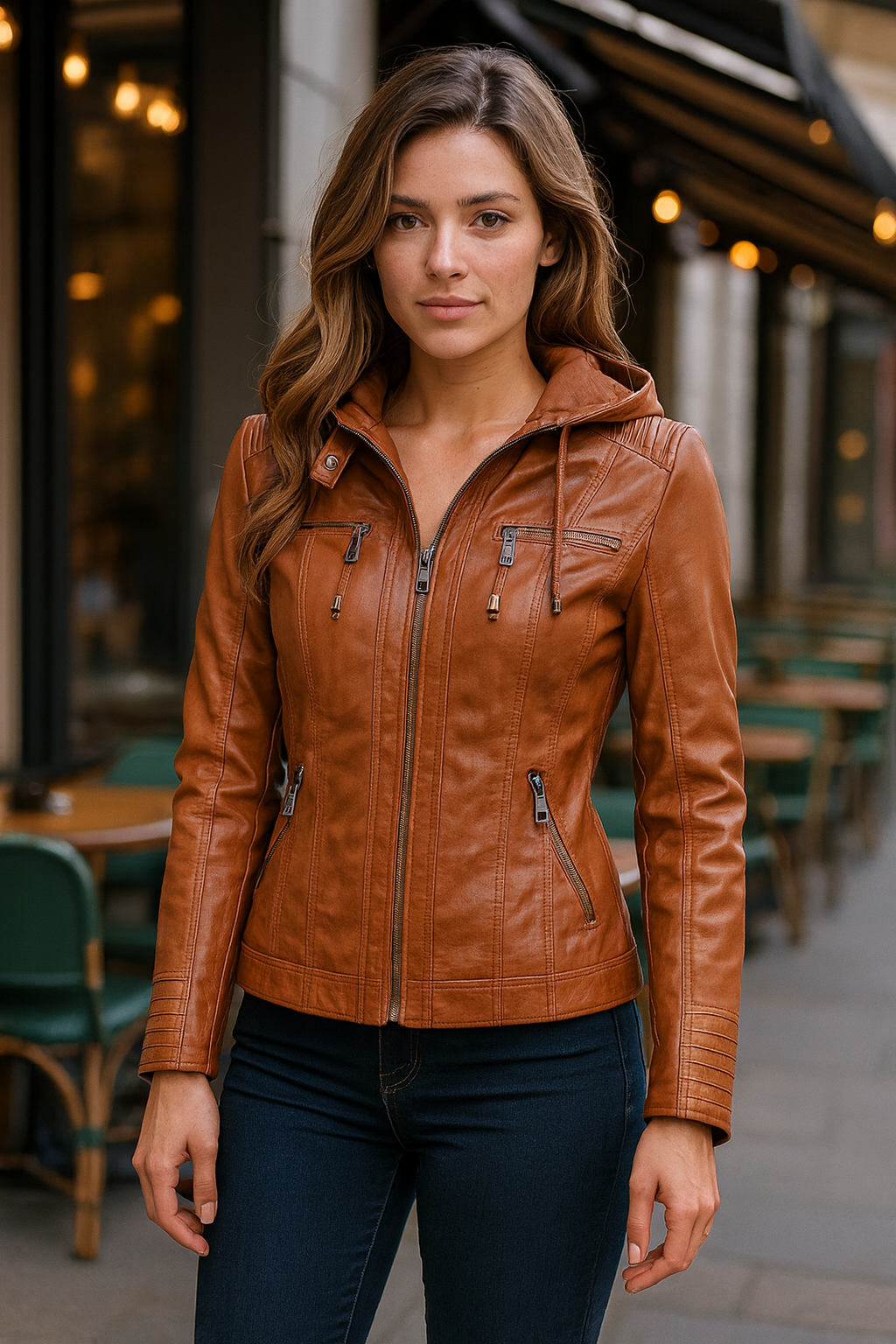 Giubotto in pelle elegante da donna, traspirante e comodo da indossare, in pelle ecochic.